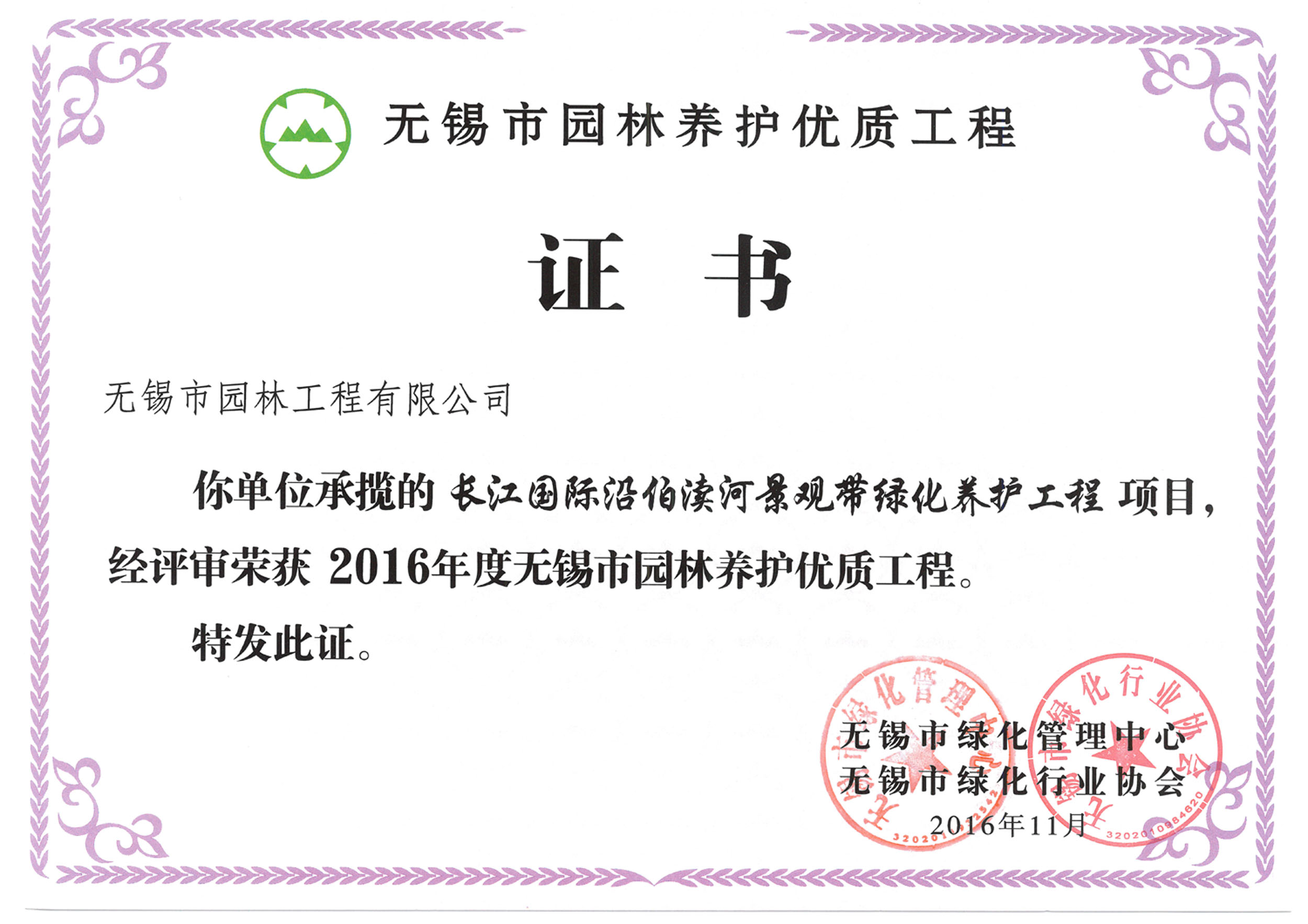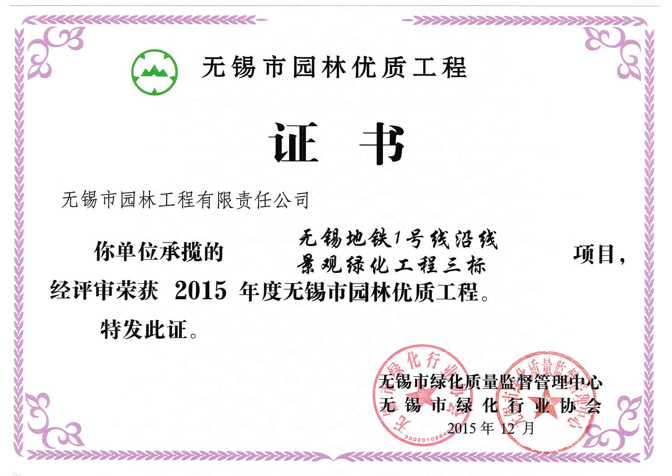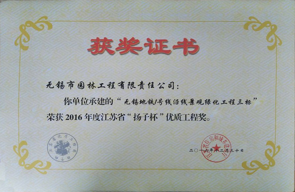2016揚(yáng)子杯——無(wú)錫地鐵1號(hào)線沿線景觀綠化工程三標(biāo)