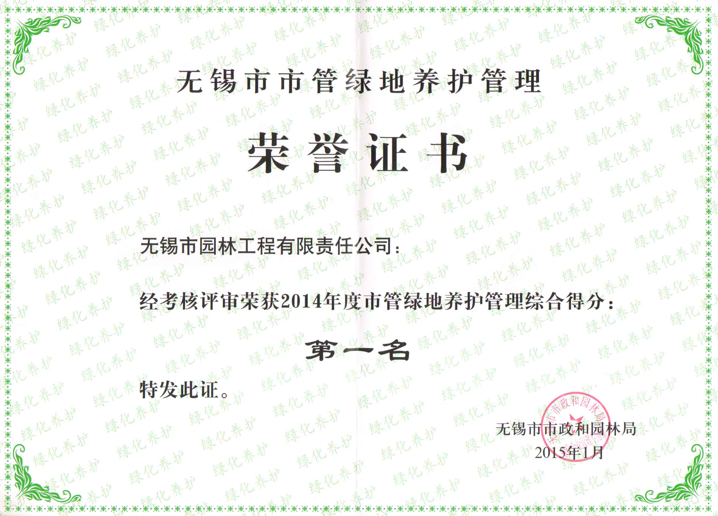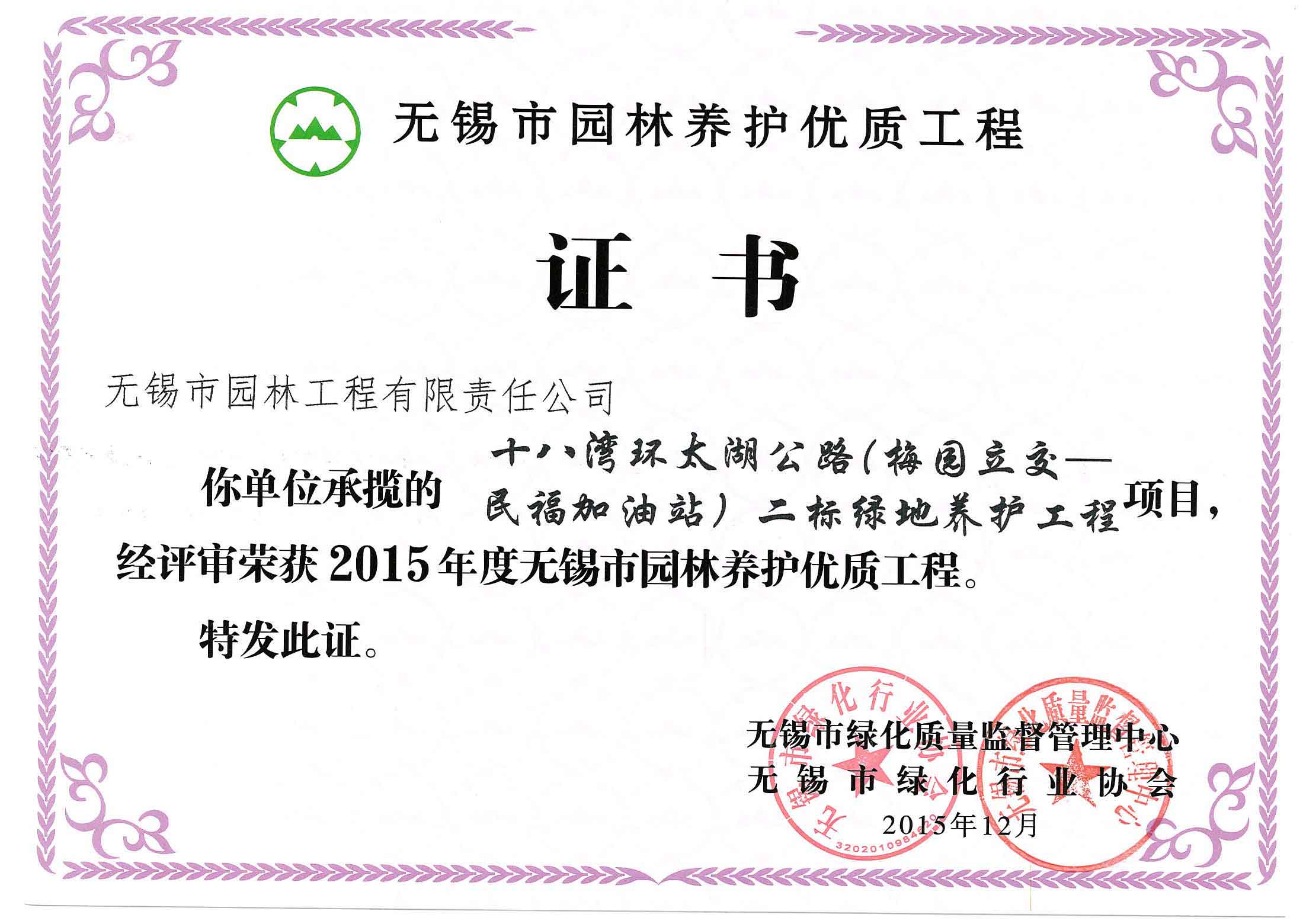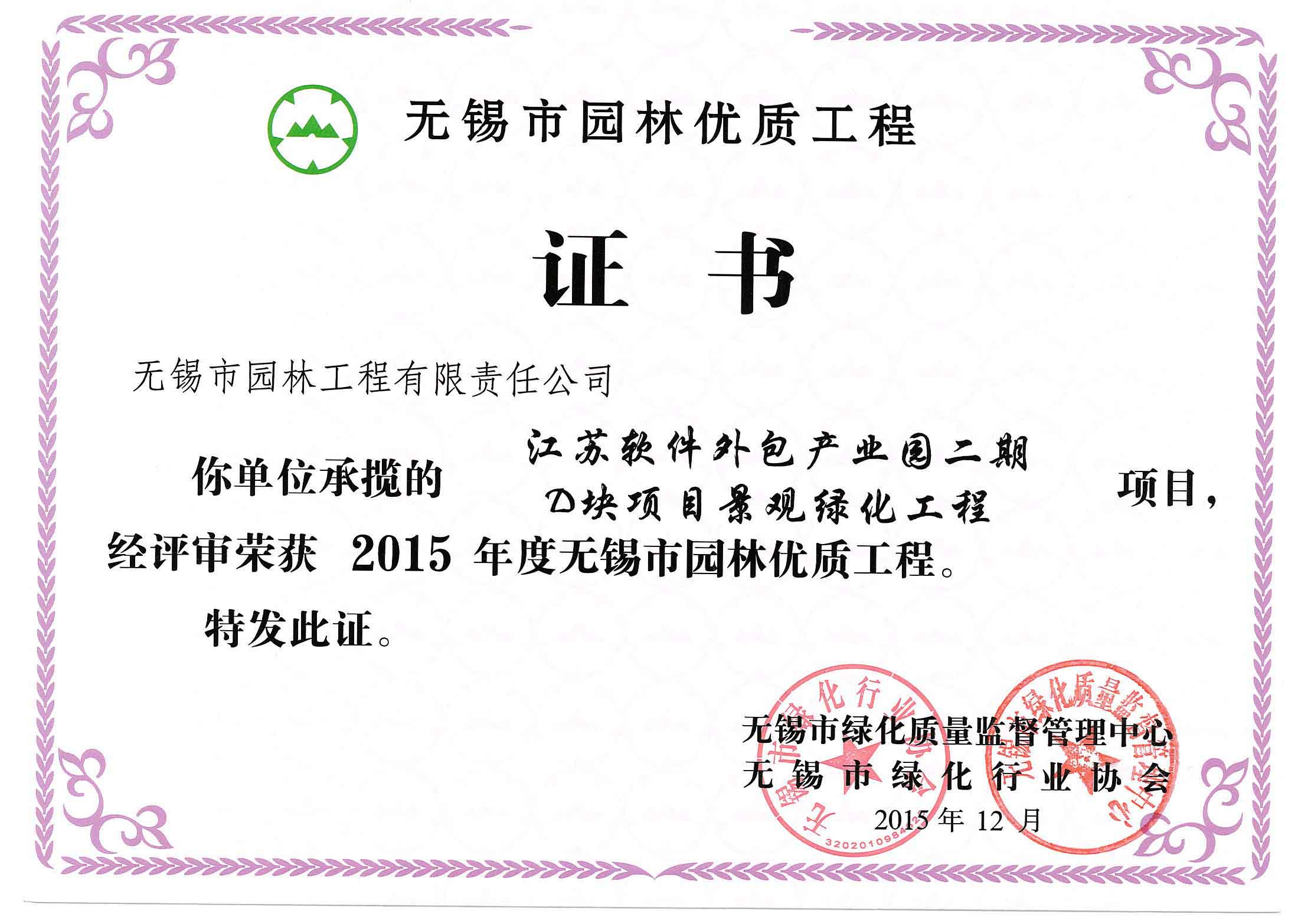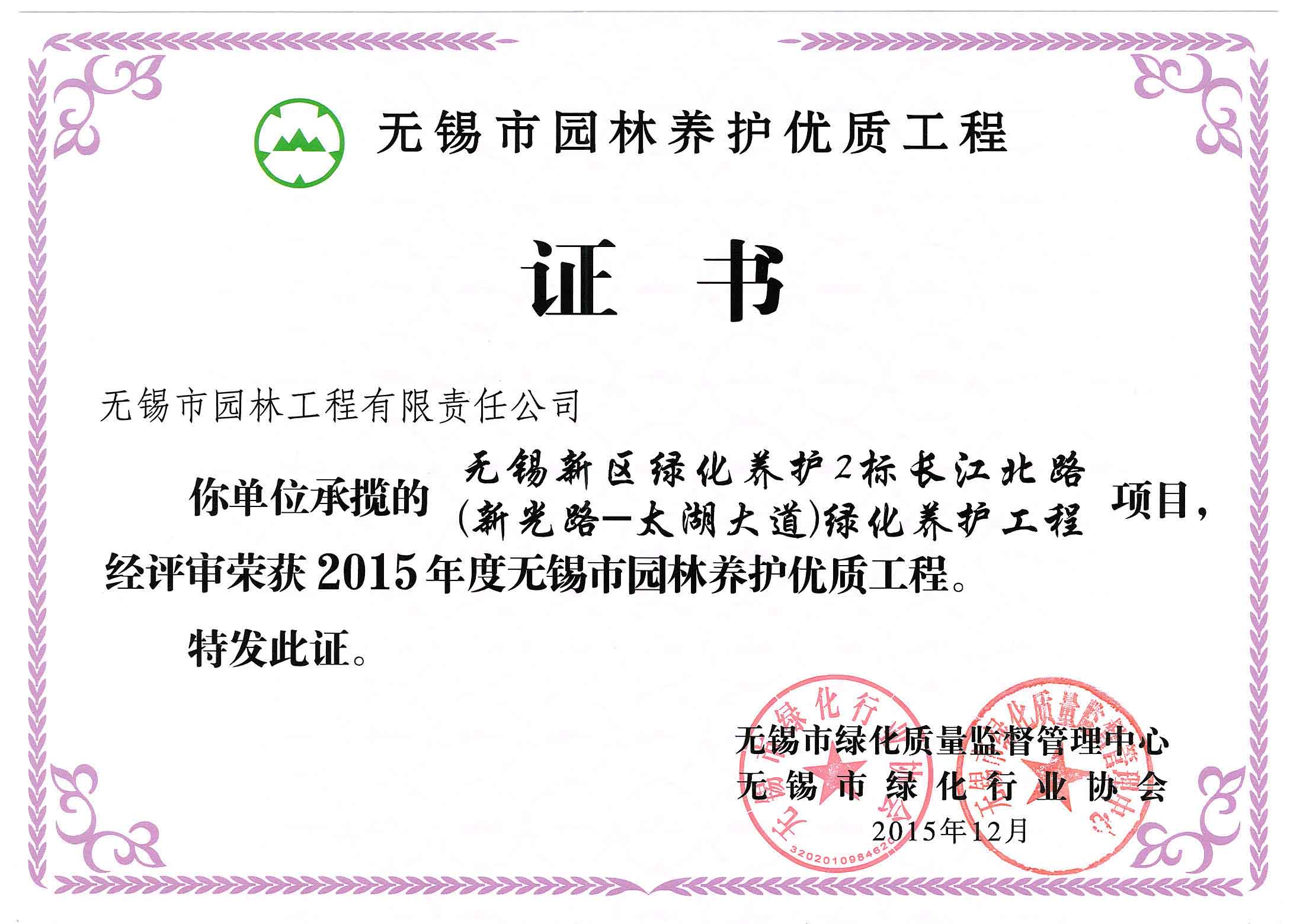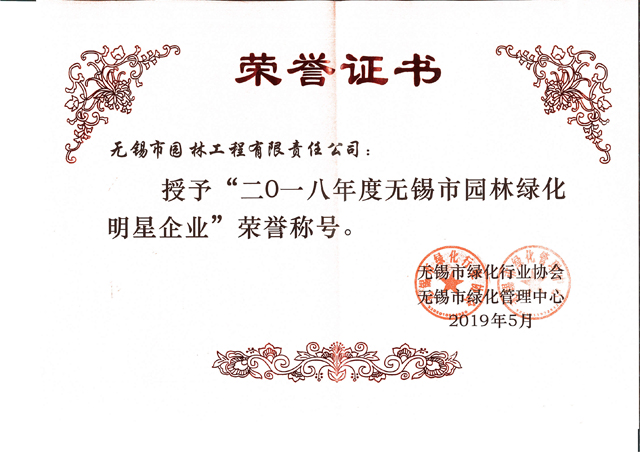 2015年度無(wú)錫市園林綠化明星企業(yè)