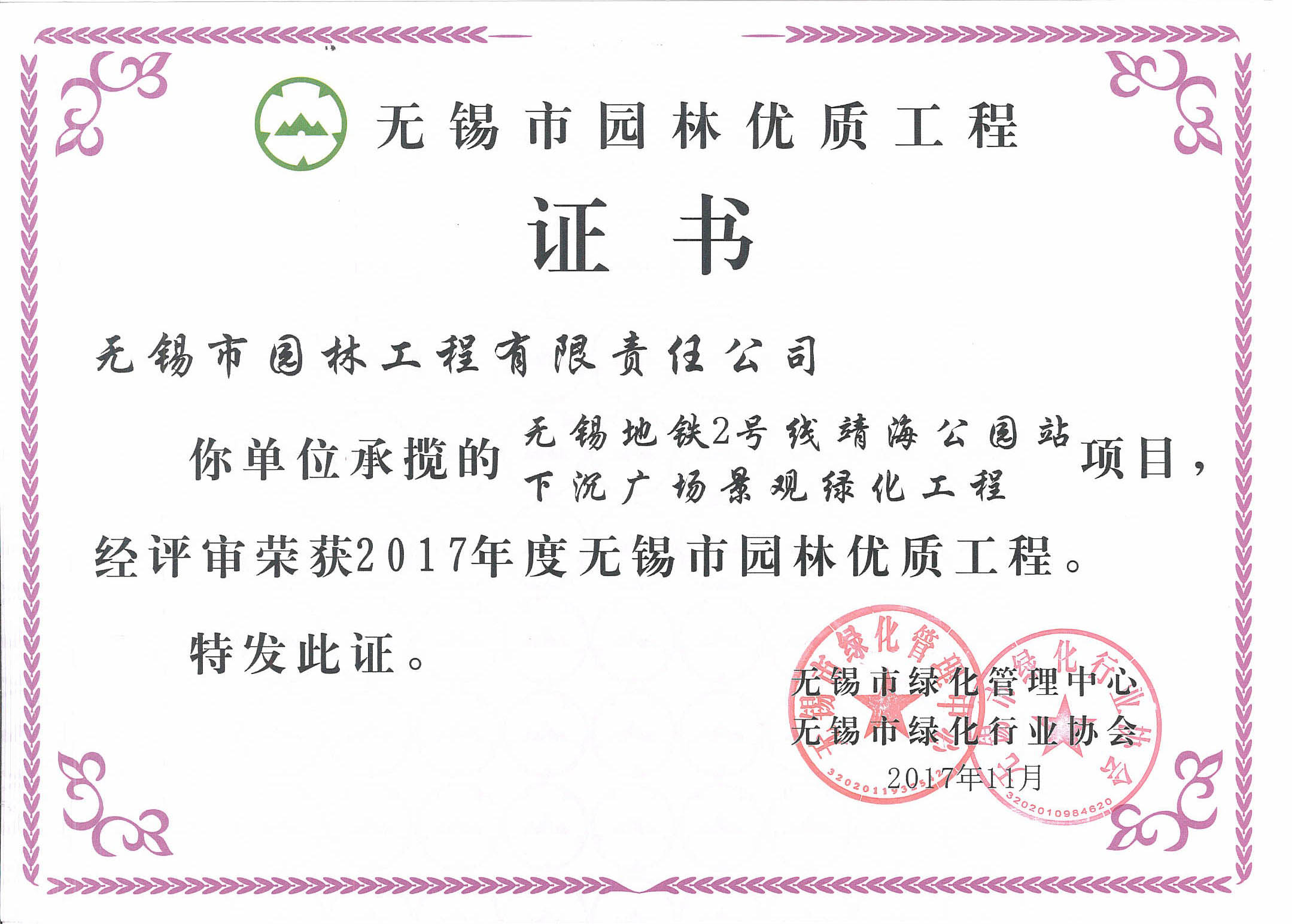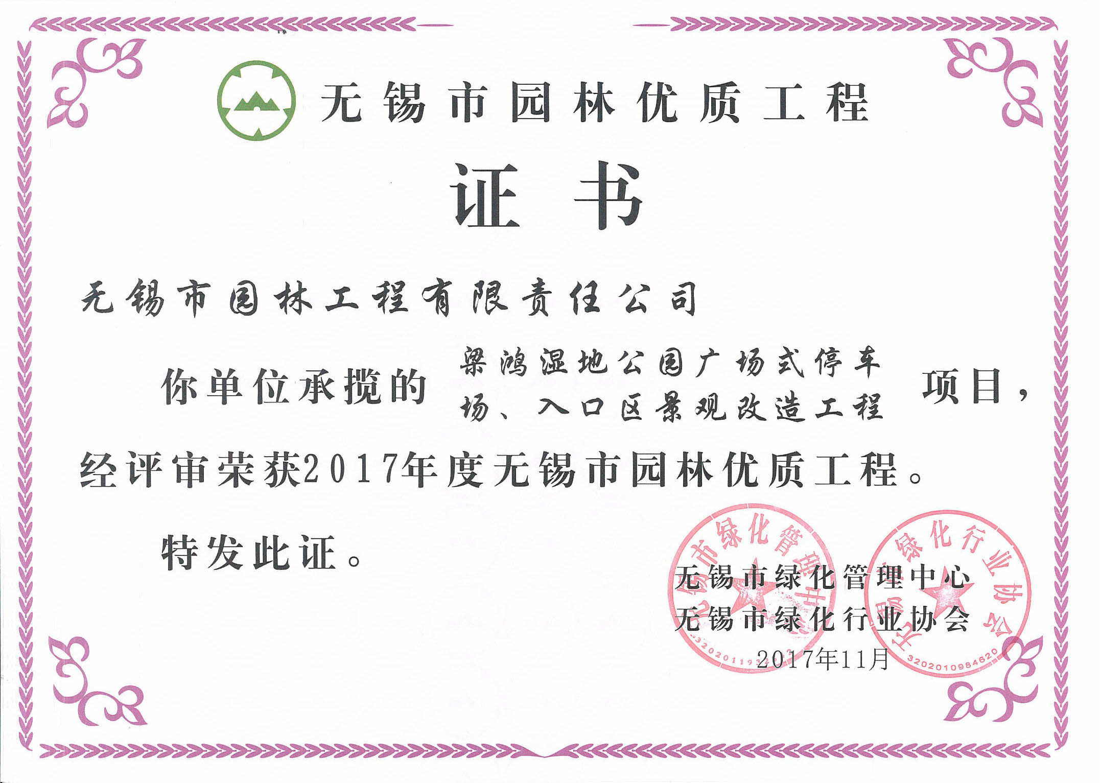 2017年度無(wú)錫市太湖杯優(yōu)質(zhì)工程