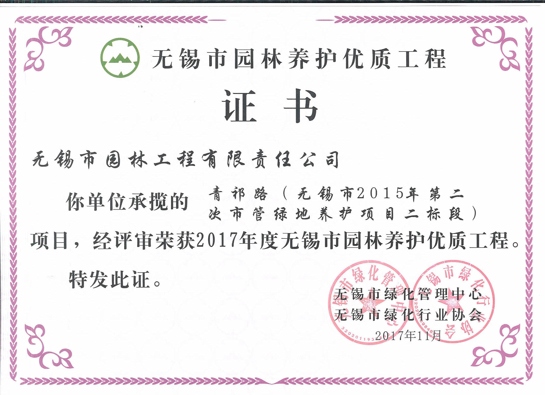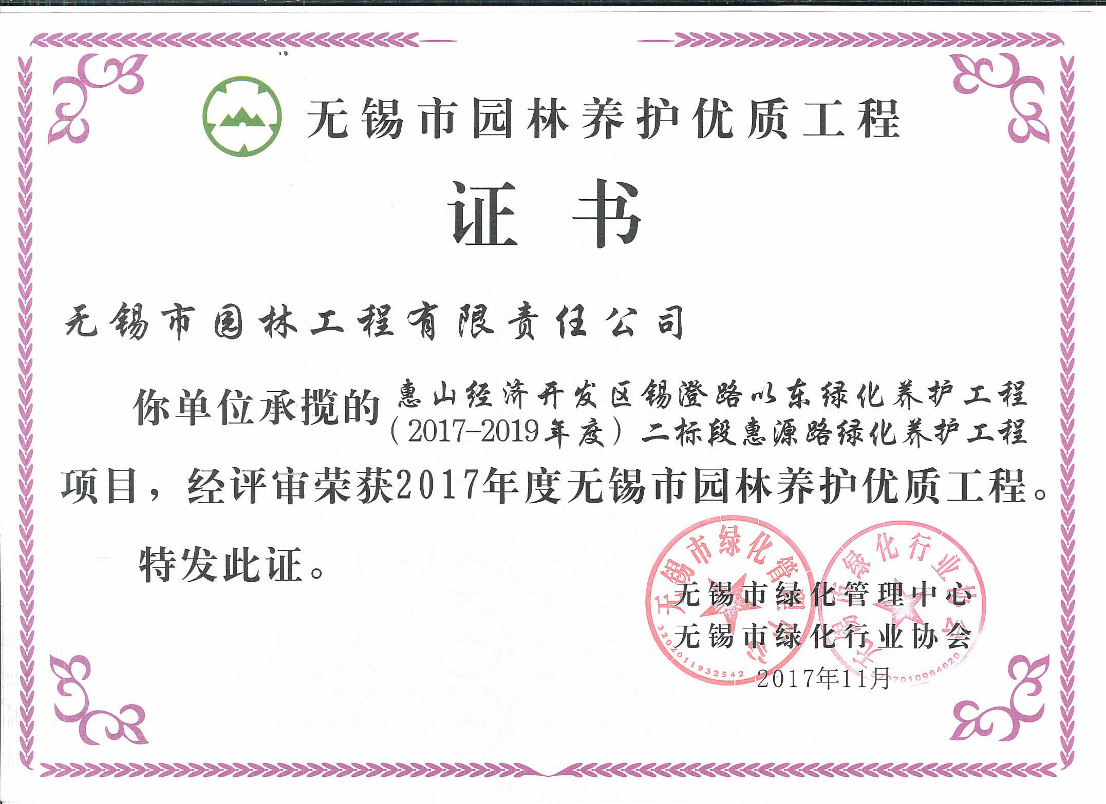 2017-2018無(wú)錫市綠化工作先進(jìn)單位